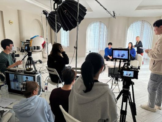 ‘올림픽 프렌즈’ 이동욱과 김연경이 함께한 유튜브 콘텐츠 ‘곧메달 상담소’ 촬영 현장. 사진=국제올림픽위원회(IOC) |