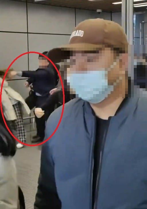 아이돌 그룹의 경호원이 공항에서 가수에게 다가선 여성 팬을 손으로 거세게 밀쳐 넘어뜨리는 영상이 공개돼 누리꾼이 공분하고 있다. [사진출처=엑스(X·옛 트위터)] |