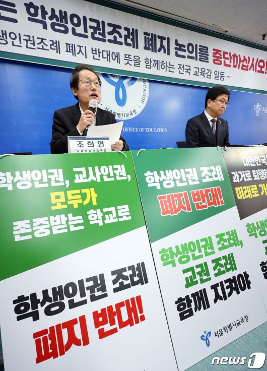 학생인권조례 폐지 반대 입장 밝히는 교육감들