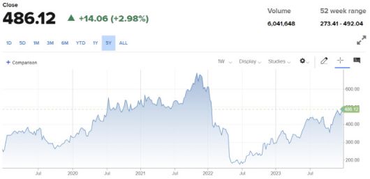 이날 넷플릭스 주가는 전거래일대비 3% 오른 486.12달러에 마감하며 52주 신고가를 경신했다. 올 들어 주가 상승률은 65%를 웃돌고 있다. 벤자민 스윈번 분석대로라면 여기서 13% 더 오를 수 있다는 얘기다.