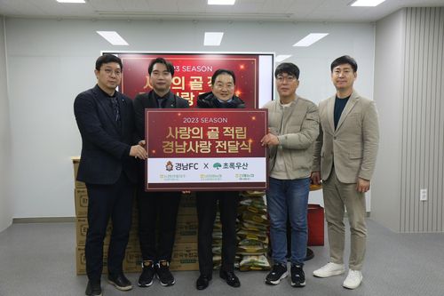 (서울=연합뉴스) 이영호 기자 = 프로축구 K리그2 경남FC가 19일 초록우산 경남지역본부에서 남창원농협·진해농협·농협식품과 함께 '2023시즌 사랑의 골 적립 경남사랑 전달식'을 진행했다.