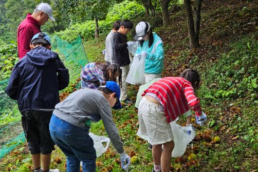 옥동초등학교 학생들이 지난 9월 13일 영월 태화산에서 밤줍기 행사를 했다. 영월 옥동초등학교 제공 |