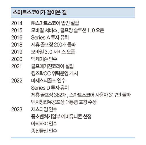 예상은 적중했다. 골프장 관제 서비스를 통해 확보한 인프라를 바탕으로 스마트스코어는 국내 최대 규모 골프 앱으로 성장했다. 2022년 말 기준 국내 골프인구 약 1000만 명 가운데 스마트스코어 앱 이용자는 약 340만 명으로 골프인구의 34% 이상이 스마트스코어 플랫폼을 사용하고 있다. 2023년 10월 기준 스마트스코어의 제휴 골프장 수는 367개이며 골프장 점유율은 81.6%에 달한다. 스마트스코어는 올해 말까지 약 380개로 제휴 골프장을 늘려 84% 점유율 달성을 목표로 하고 있다.