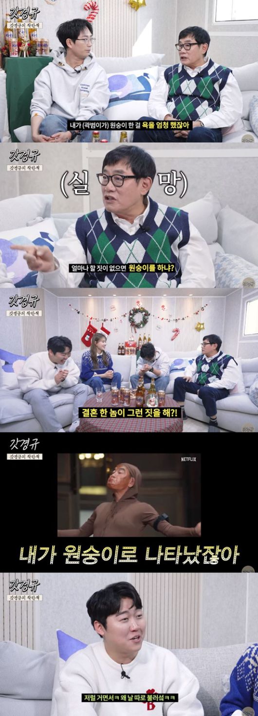 이경규는 "곽범이 원숭이 개그를 하지 않았냐. 내가 (곽범이) 원숭이 개그를 한 걸 엄청 욕하지 않았냐. '왜 저런 짓을 하냐고'"라며 입을 열었다.