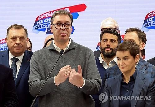 총선 출구조사 후 회견하는 알렉산다르 부치치 세르비아 대통령 |
