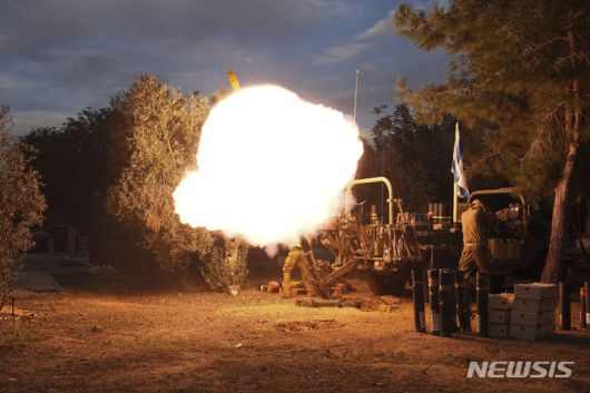 [가자지구=AP/뉴시스] 이스라엘 군인들이 20일(현지시각) 이스라엘 남부에서 가자지구를 향해 박격포를 발사하고 있다. 2023.12.21. |