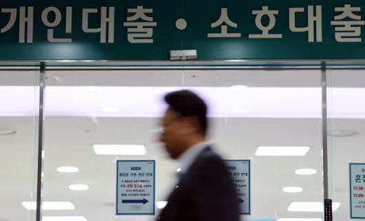 서울에 위치한 은행 개인대출 및 소호대출 창구 앞으로 시민이 지나가고 있다. 사진=뉴스1 |