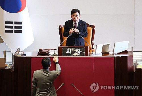 민주당은 이날 국회 본회의에서 의사일정 변경동의를 통해 특별법 상정을 요구했지만, 김 의장은 "여야 합의 처리는 나만 원하는 게 아니라 엄동설한에 오체투지를 하며 법안처리를 요청하는 유가족의 간절한 호소이기도 하다"며 받아들이지 않았다.