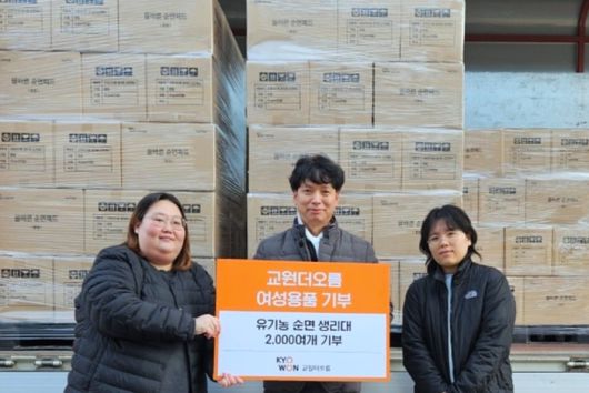 복지사각지대에 놓인 여성들의 건강한 생활을 지원하고자 미혼모협회 인트리에 1000만원 상당의 교원더오름 여성위생용품 2000여개를 기부한다. 위생용품 구입이 어려운 취약계층 미혼모, 한부모 자녀 등에게 전해질 예정이다.