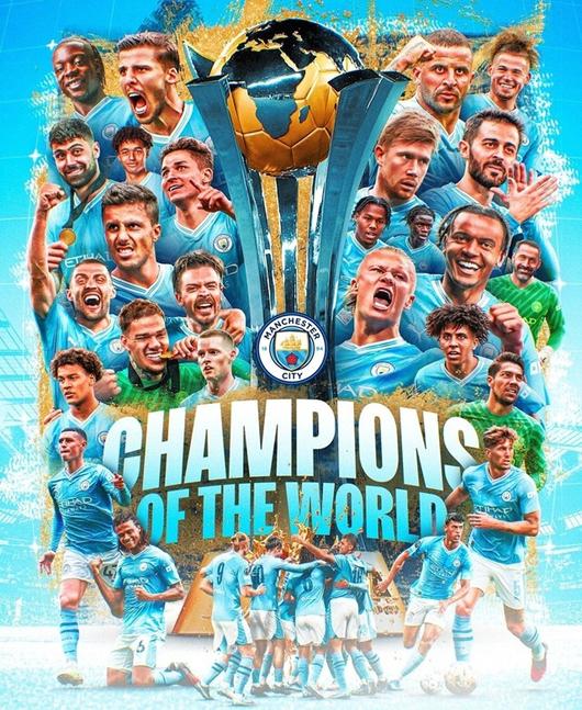 맨체스터 시티는 23일(한국시간) 사우디아라비아 제다의 킹 압둘라 스포츠 시티 스타디움에서 열린 2023 국제축구연맹(FIFA) 클럽 월드컵 결승전에서 플루미넨시(브라질)을 4-0으로 제압하며 세계 챔피언에 올랐다.