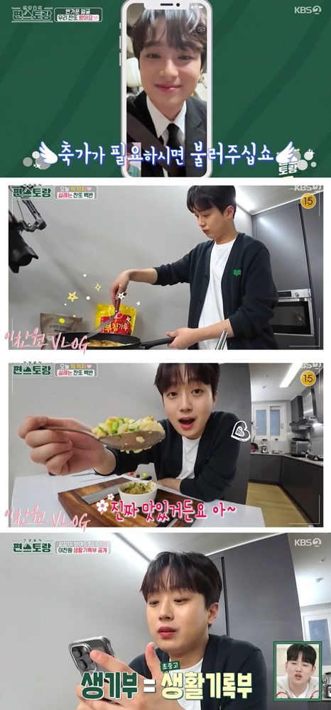 레전드 레시피를 갱신한 이찬원은 요즘 유행 중인 학창시절 생활기록부 열람에 동참하며 시선을 모았다. 이찬원은 6년 개근상 표창부터 교육감상까지 엄청난 수상경력을 소개했고, 학창시절 담임선생님과 꾸준히 연락하는 근황도 공개해 훈훈함을 더했다.