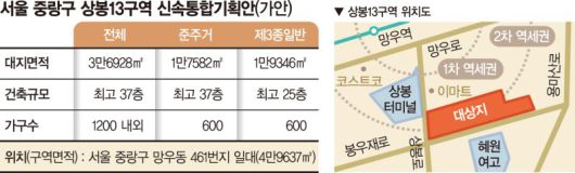 시는 신속통합기획안을 통해 노후 저층주거지가 밀집한 상봉13구역을 최고 37층, 1250가구 내외 아파트 단지로 탈바꿈한다는 계획이다. 지난해 12월 신통기획 2차 후보지로 지정된 지 1년만에 기획안이 나온셈이다. 기존 용도지역인 제3종 일반주거지역 중 일부를 준주거지역으로 종상향하고, 나머지를 제3종 일반으로 개발한다. 준주거는 35층 내외, 제3종은 25층 내외로 지어진다.