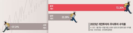 하이투자증권 이상헌 연구원은 "올해는 개인투자자들이 끌어올린 2차전지가 국내 증시를 견인했다고 해도 과언이 아니다"라며 "한국, 미국, 일본의 주요 지수만 살펴보면 서학개미가 가장 좋은 성적표를 내는 것이 당연하지만 지수와 반대로 움직인 전략이 부진한 성적으로 이어졌다"고 진단했다. 이어 "내년 국내 증시에서는 반도체가 주도주가 될 것"이라며 "자동차, 방산 등도 주목해야 한다"고 덧붙였다.
