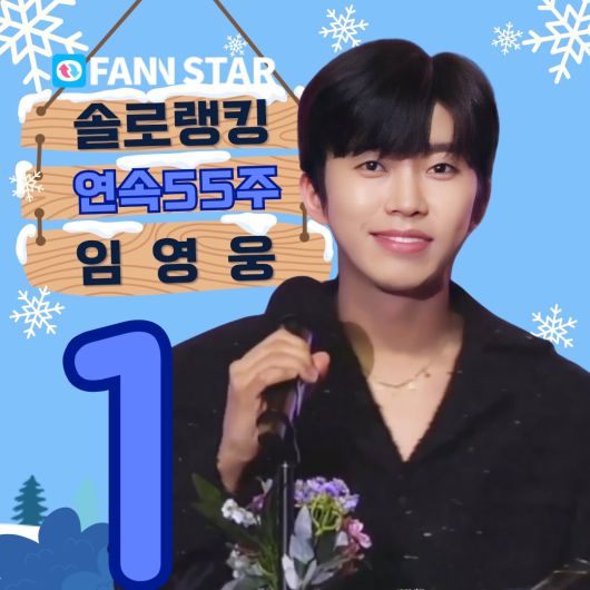 팬앤스타 12월 3주차 솔로 랭킹 투표(12월 18일부터 12월 25일까지 진행)에서 임영웅은 3627만 5236표를 획득해 1위에 올랐다. 기존 트로트 랭킹(82주 연속 1위) 대신 솔로 랭킹에 포함된 이후 55주 연속 1위 자리를 지켰다.