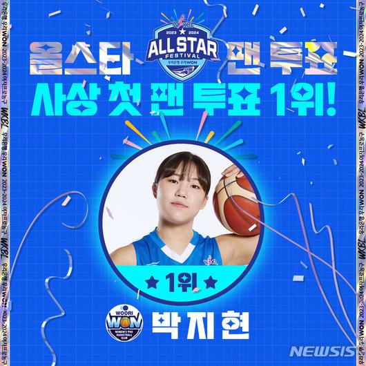 박지현은 지난 6일부터 25일까지 진행한 우리은행 우리WON 2023~2024 여자프로농구 올스타 팬 투표에서 가장 많은 3만2639표를 받았다.