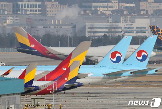 (인천공항=뉴스1) 박정호 기자 = 대한항공과 아시아나항공의 합병이 해를 넘기게 된 가운데 26일 오후 인천국제공항 계류장에 대한항공과 아시아나항공의 항공기가 지나고 있다. 최근 유럽연합(EU) 경쟁당국은 2024년 2월14일 전까지 대한항공과 아시아나항공의 기업결합 심사를 잠정적으로 결론 내리겠다고 공지했다. 2023.12.26/뉴스1