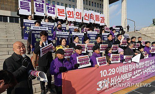 이지연 참여연대 사무처장은 "여야 의지만 있다면 당장 28일 본회의에서 특별법을 제정할 수 있다"며 "진상규명의 첫 단추를 끼우지 못한 상황에서 해를 넘길 수는 없다"고 호소했다.