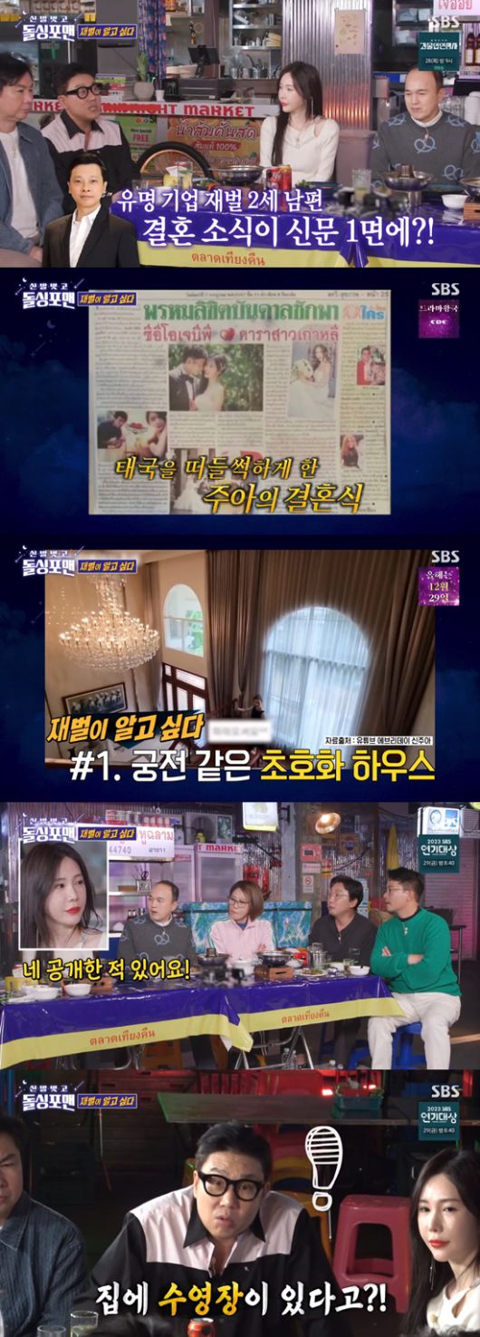 이상민은 "남편 분이 워낙 유명 기업 재벌 2세라서 결혼 소식이 태국 신문 1면에 났다"고 언급했다. 이어 "정말 궁전 같은 초호화 하우스에 살고 있냐"고 질문했다.