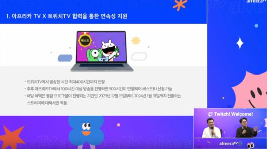 트위치와 더불어 국내 게임방송 시장을 양분하던 아프리카TV는 최근 트위치 시청 1위 스트리머인 '우왁굳'의 아프리카TV 이적 선언 등으로 수급 효과를 톡톡히 봤다. 특히 스트리머가 트위치에서 방송한 시간도 400시간까지 인정해 주고, 트위치 계정을 아프리카TV와 연동하는 기능을 추가하는 등 스트리머 확보에 적극적인 모습이다.