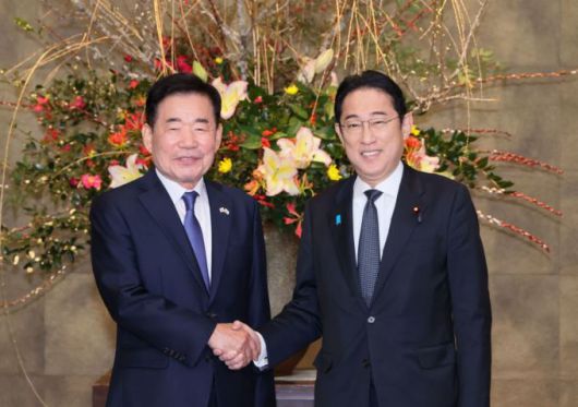 [서울=뉴스핌] 최원진 기자= 기시다 후미오 일본 총리가 27일 총리관저에서 김진표 국회의장을 면담했다.