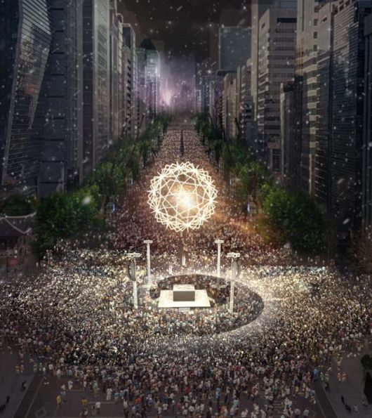 2024년 1월 1일 0시, 서울 종로구 세종대로에 새해를 축하하는 초대형 태양 구조물이 떠오른다.