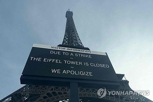 (런던=연합뉴스) 최윤정 특파원 = 프랑스 랜드마크인 에펠탑의 고층부 관람이 노조의 파업으로 27일(현지시간) 중단됐다고 AP통신 등 외신이 보도했다.