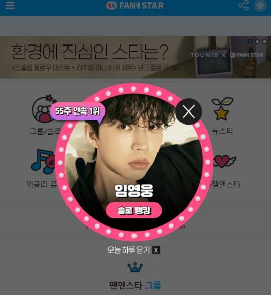 지난 25일 가수 임영웅이 '팬앤스타' 솔로랭킹 1위를 차지했다. /팬앤스타 |