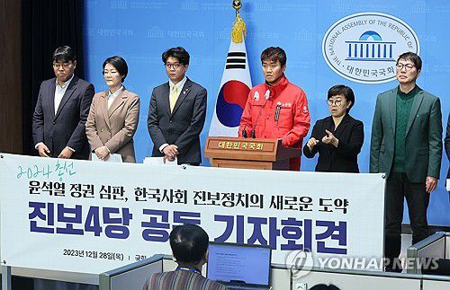 (서울=연합뉴스) 한혜원 기자 = 정의당, 진보당, 녹색당, 노동당 등 4개 진보 계열 정당은 28일 "윤석열 정권의 거대한 퇴행에 맞서 22대 총선에서 공동 대응을 모색하기로 의견을 모았다"고 말했다.