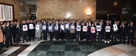 앞서 특별법을 둘러싼 양당 이견이 좁혀지지 않자 김 의장은 특검 관련 조항을 삭제하고 시행을 내년 4월 총선 이후로 미루는 내용의 중재안을 제시했다.