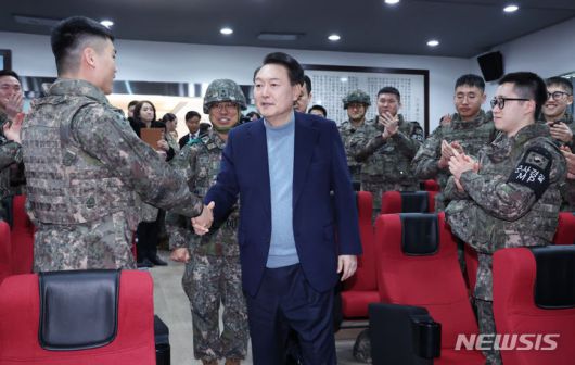 윤 대통령은 "추운 날씨에도 철통같이 임무를 수행하고 있는 여러분께 정말 감사드린다"며 장병 처우 인상도 약속했다.