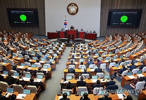 (서울=연합뉴스) 차지연 안채원 기자 = '대장동 개발사업'을 주도한 화천대유가 전직 법조계 고위 인사들에게 50억원을 주기로 했다는 '50억 클럽' 의혹을 수사하기 위한 특별검사 도입 관련 법안이 28일 국회 본회의를 통과했다.