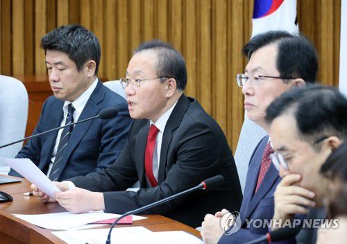 윤 원내대표는 국회에서 열린 원내대책회의에서 북한 김정은 국무위원장이 '내년 초 남한에 큰 파장을 일으킬 수 있는 방안을 마련하라'고 지시했다는 국가정보원 발표와 관련해 "앞으로 우리 대응이 중요하다"며 이같이 밝혔다.