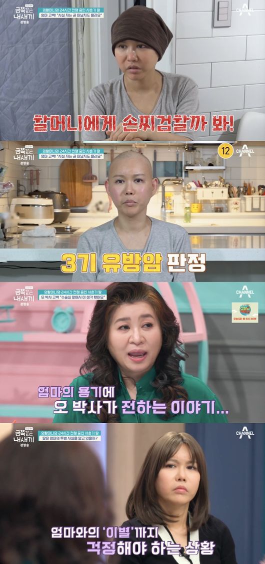 그런 가운데 금쪽이 엄마는 8월 국가검진을 한 뒤 유방암 3기 판정을 받고 현재 4차 항암치료 중이라고 고백했다. 그는 “엄마로서 해줄 수 있는게 많지 않아서 죄책감이 크다”라며 “앞으로도 내가 해줄 수 있는 게 없단 걸 알고 있기 때문에 마음이 아프다”라며 눈물을 흘렸다. 그러면서 “제가 만약에 죽거나 아프면 저한테는 할머니 밖에 없다. 우리 딸이 잘못한 걸 보여주는 것도 싫은데 저는 더 방법이 없다. 도와주셨으면 좋겠다”라고 호소했다.