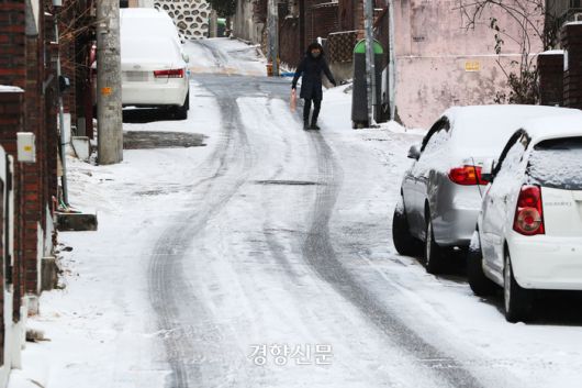 눈이 쌓이고 얼어 빙판길이 되는 곳이 많겠으니 차량 속도를 줄이고, 보행자는 안전에 유의해야 한다.