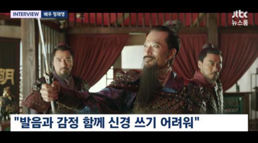 이날 정재영은 명나라 옛언어를 수준급으로 소화했다는 칭찬에 “편집의 힘이겠죠. 감독님이 잘 해주셔서”라고 겸손을 보이면서도 “배우로서 힘들긴 하더라. 여러가지 표현을 보여드려야하는데, 외국어라 한정되어있고 감정 변화를 시키며 실수 할수도 있어서 그런 부분을 같이 신경쓰기가 힘들었다”고 토로했다.