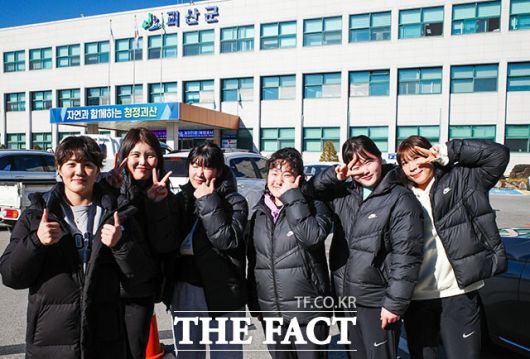 괴산군청 여자씨름단 선수들이 갑진년 2024년을 앞두고 <더팩트>와 인터뷰를 하고 있다. 사진 왼쪽부터 김채오·임정수·강하리·이재현·김지한·김다영 선수. /괴산=김세정 기자 |