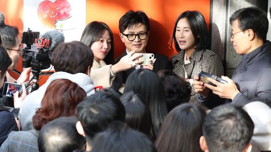 한동훈 국민의힘 비상대책위원장이 법무부 장관 시절인 작년 11월 17일 대구 수성구 스마일센터 방문 중 시민들의 요청으로 셀카를 찍고 있다./연합뉴스 |