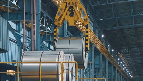 포스코DX의 무인크레인 시스템이 철강 제품을 옮기고 있다. |