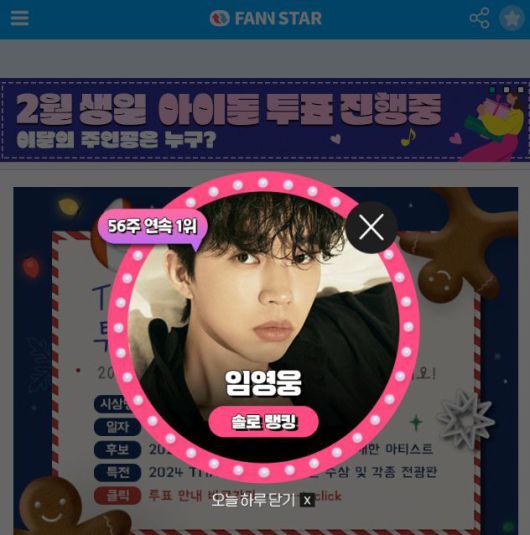 '팬앤스타' 12월 넷째 주 솔로 랭킹 투표에서 3808만 6825표 득표