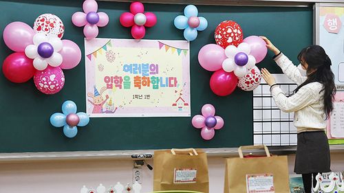 입학식 준비하는 초등 담임 선생님 |