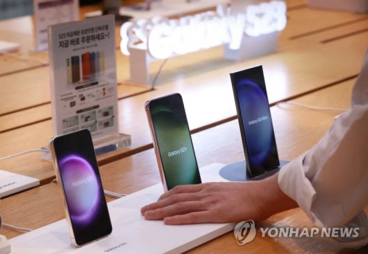 지난해 2월 17일 서울 서초구 삼성전자 서초사옥 내 딜라이트샵에 갤럭시 S23시리즈가 전시돼 있다. 연합뉴스 |