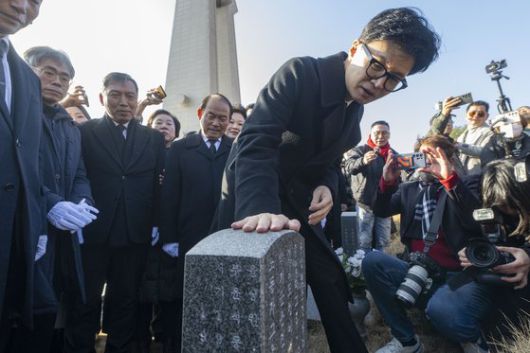 4일 광주를 방문한 한동훈 국민의힘 비상대책위원장이 북구 운정동 국립5 ·18민주묘지를 방문해 박기순 열사 묘소를 살펴보고 있다. 뉴스1 |