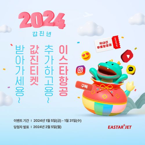 ▲ 이스타항공은 오는 31일까지 소셜미디어(SNS) 구독 이벤트를 진행한다고 5일 밝혔다. 이스타항공 유튜브와 인스타그램, 카카오톡 채널을 구독한 뒤 홈페이지나 앱의 이벤트 페이지에 참여 완료 댓글을 남기면 된다. 참여자 중 3명을 추첨해 국내선 항공권을 지급한다. (서울=연합뉴스)