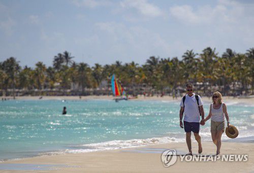 멕시코 캉쿤 쿠쿨칸 지역 해변을 거니는 휴양객 |
