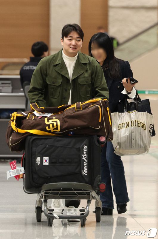(인천공항=뉴스1) 신웅수 기자 = 메이저리그(MLB) 샌디에이고 파드리스와 계약한 고우석이 6일 오전 인천국제공항 2터미널을 통해 귀국하고 있다. 고우석은 지난해 LG 트윈스의 한국시리즈 우승을 이끈 뒤 메이저리그 진출을 타진했고 지난 4일 샌디에이고와 2+1년, 최대 940만달러(약 123억원) 계약을 체결했다. 2024.1.6/뉴스1