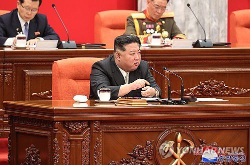 전원회의에서 '2024년도 투쟁과업' 제시하는 김정은 |