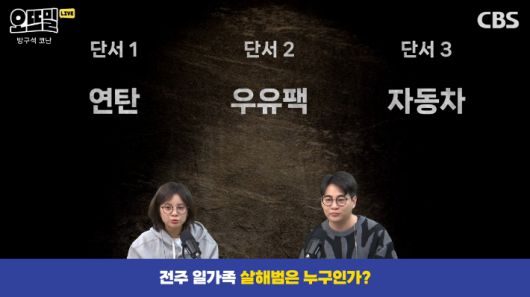 ◆ 서정암> 안녕하세요. 서정암 아나운서입니다. 오늘 제가 준비해 온 사건은 전주에서 벌어진 밀실 살인 사건인데요. 사건의 단서가 세 가지 있습니다.