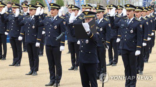 임용선서하는 신임경찰들 |