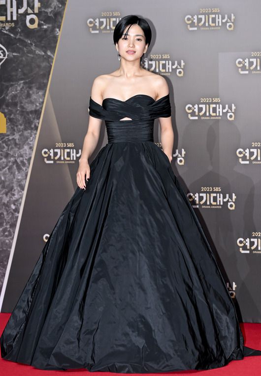 김성현 기자 : 클래식한 느낌을 주는 벨벳 느낌의 블랙 드레스, 여기에 과감한 디자인은 시상식 레드카펫에 어울리는 선택이었다. 청순함과 고혹적인 매력이 동시에 드러난다.