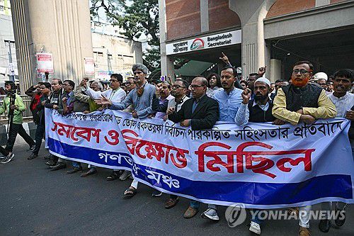 총선 하루 전인 6일 방글라데시 수도 다카서 열린 야권 항의행진 |